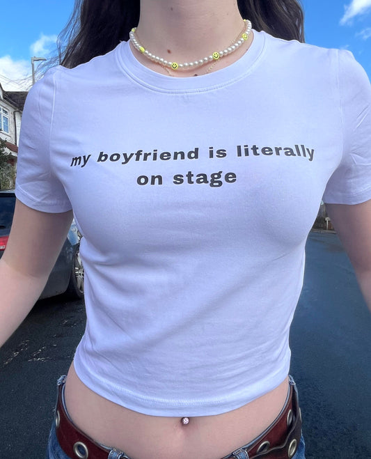 my boyfriend is literally on stage tee